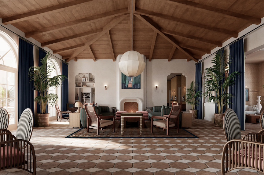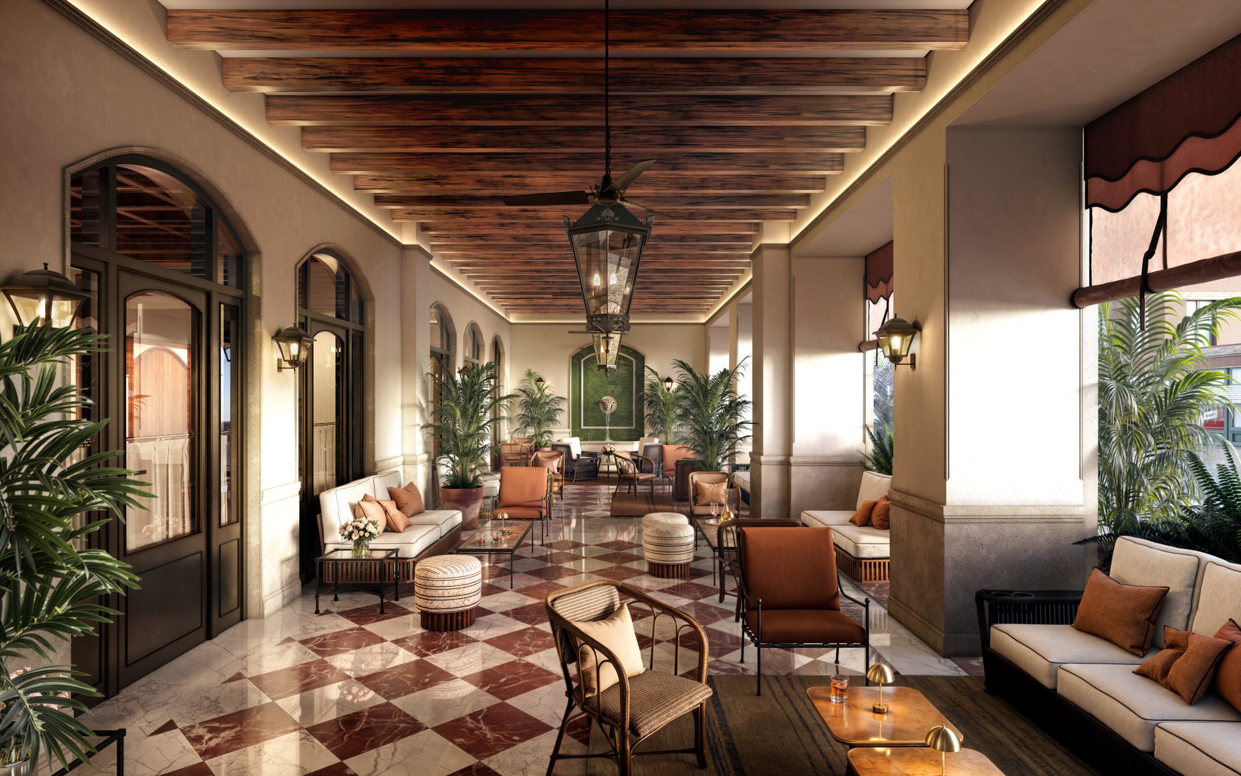 Designed with Mediterranean and Spanish colonial revival influences inspired by Addison Mizner’s architectural language, the hotel will feature arched loggias, sunlit courtyards and layered tilework that feel contextual rather than imported. Interiors by Gachot Studios aim for refined restraint, balancing elegance with livability.