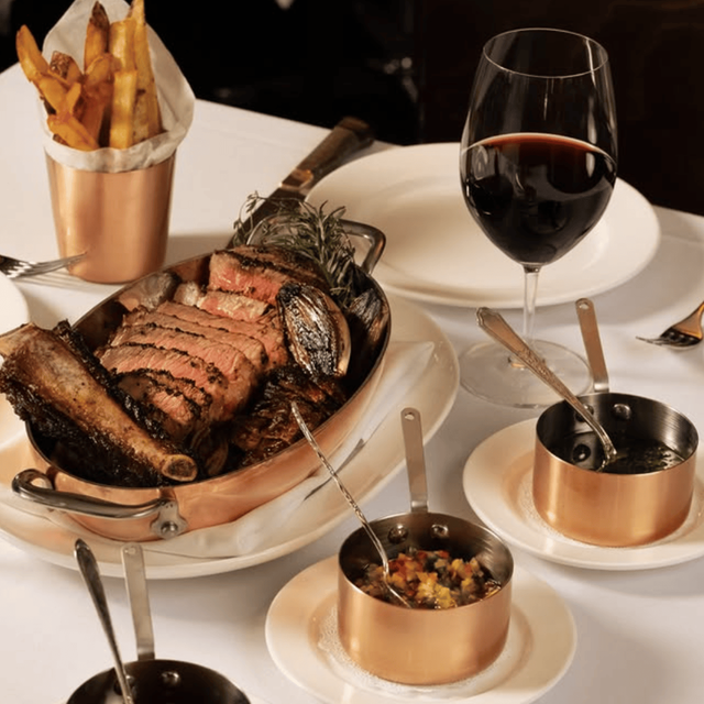 Expect handcrafted empanadas, a vibrant raw bar and crudos, seasonal salads, and house-made pastas. Signature dishes like Lobster Frite, served with hand-cut fries and Béarnaise anchor the menu, alongside exceptional steaks, fish, and shellfish, many prepared with subtle asado inspiration.